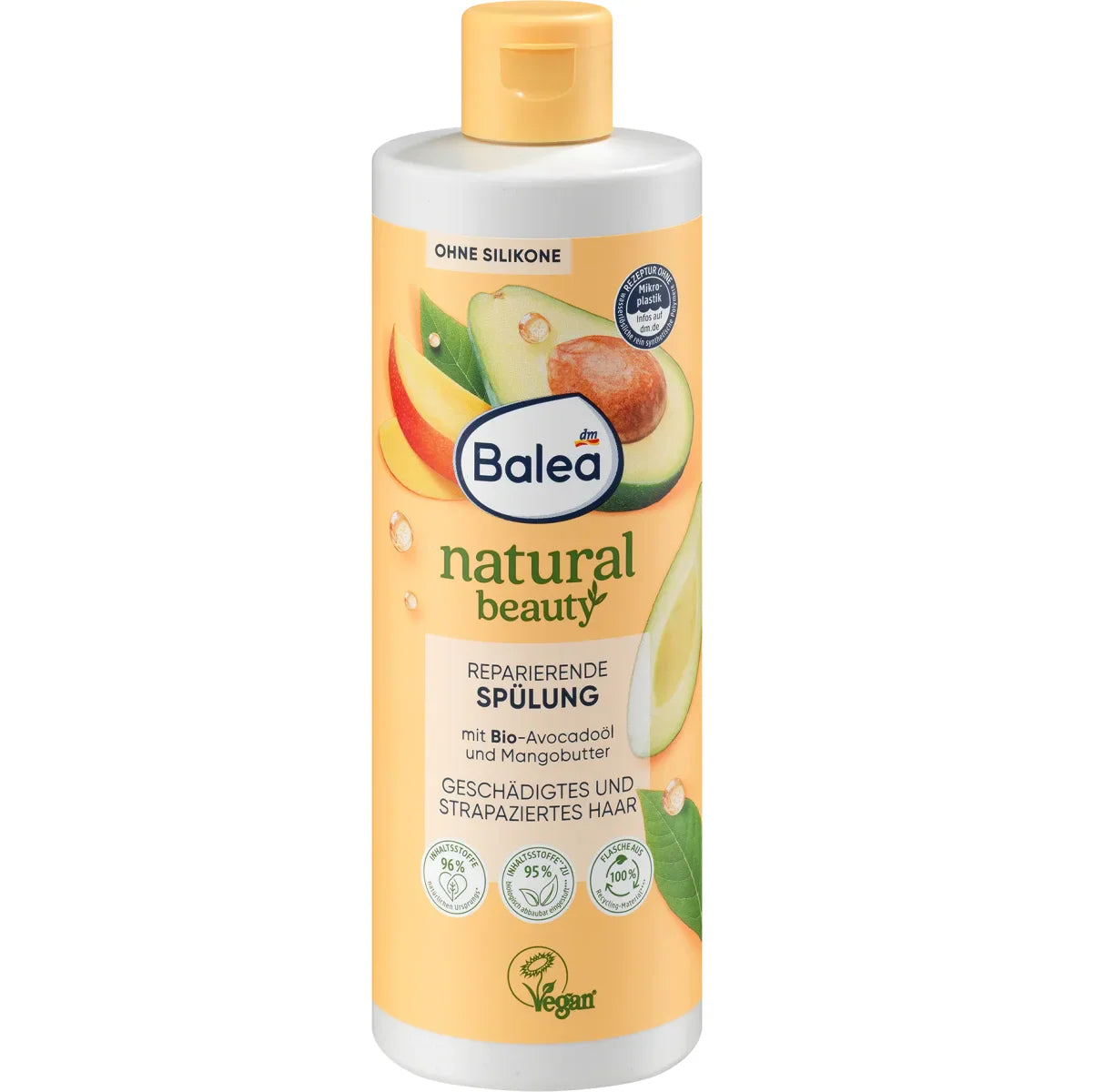 Précieux, doux et nourrissant : l'après-shampooing réparateur Balea Natural Beauty à l'huile d'avocat bio & beurre de mangue apporte aux cheveux abîmés et cassants un soin intensif sans les alourdir. Pour un démêlage optimal et des cheveux doux et souples.