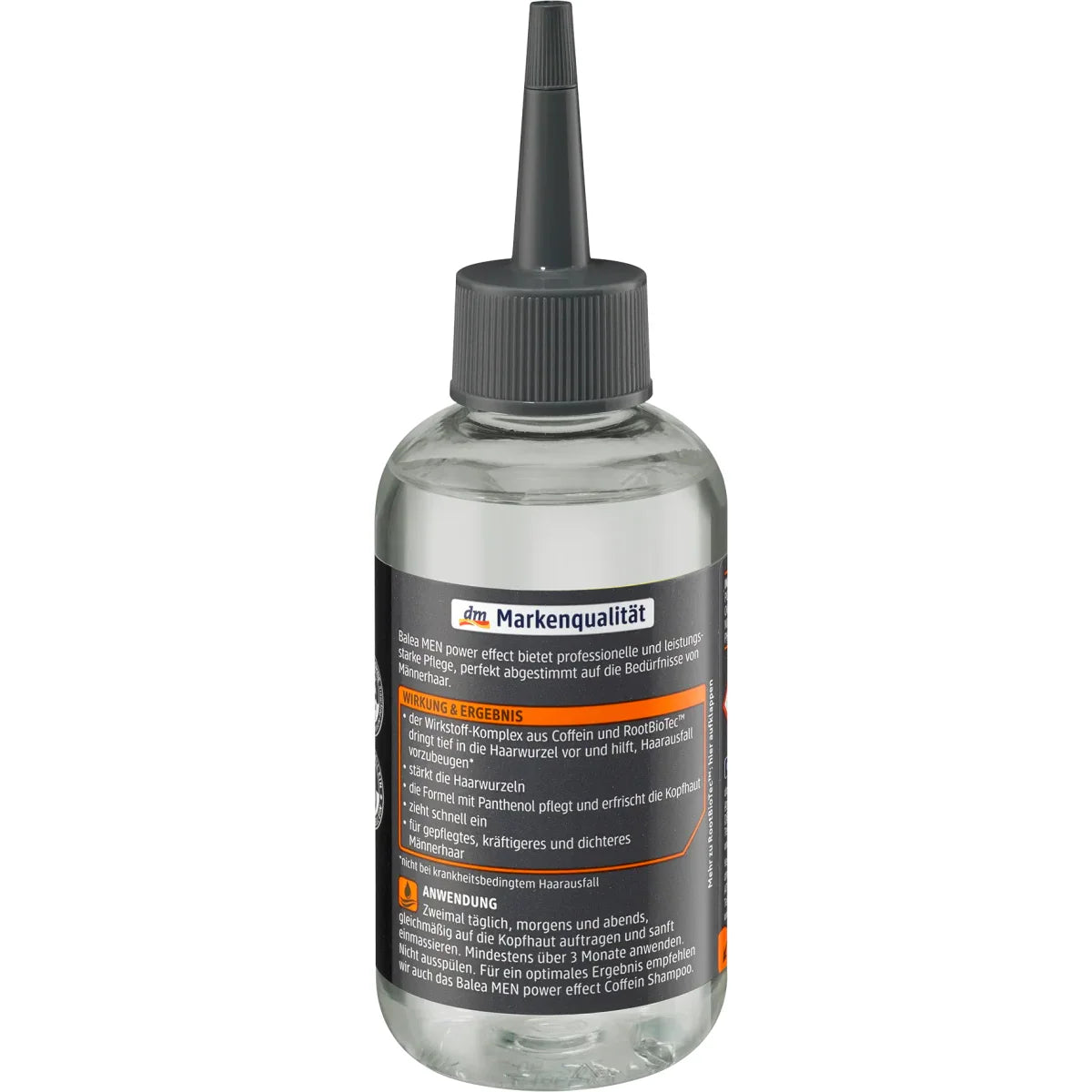 appliquer deux fois par jour, le matin et le soir, de manière uniforme sur le cuir chevelu et faire pénétrer en massant délicatement. Utiliser pendant au moins 3 mois. Ne pas rincer. Pour un résultat optimal, nous recommandons également le shampooing à la caféine Balea MEN power effect.